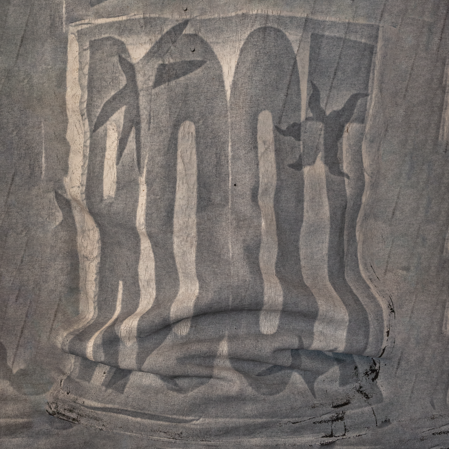 The imprint technique is a experimental technique that reveals layers of hight difference underneath my canvas, I used it to create an image with floating stars around it that are unique for every tee, each member of ROOT drew one star for this tee.
